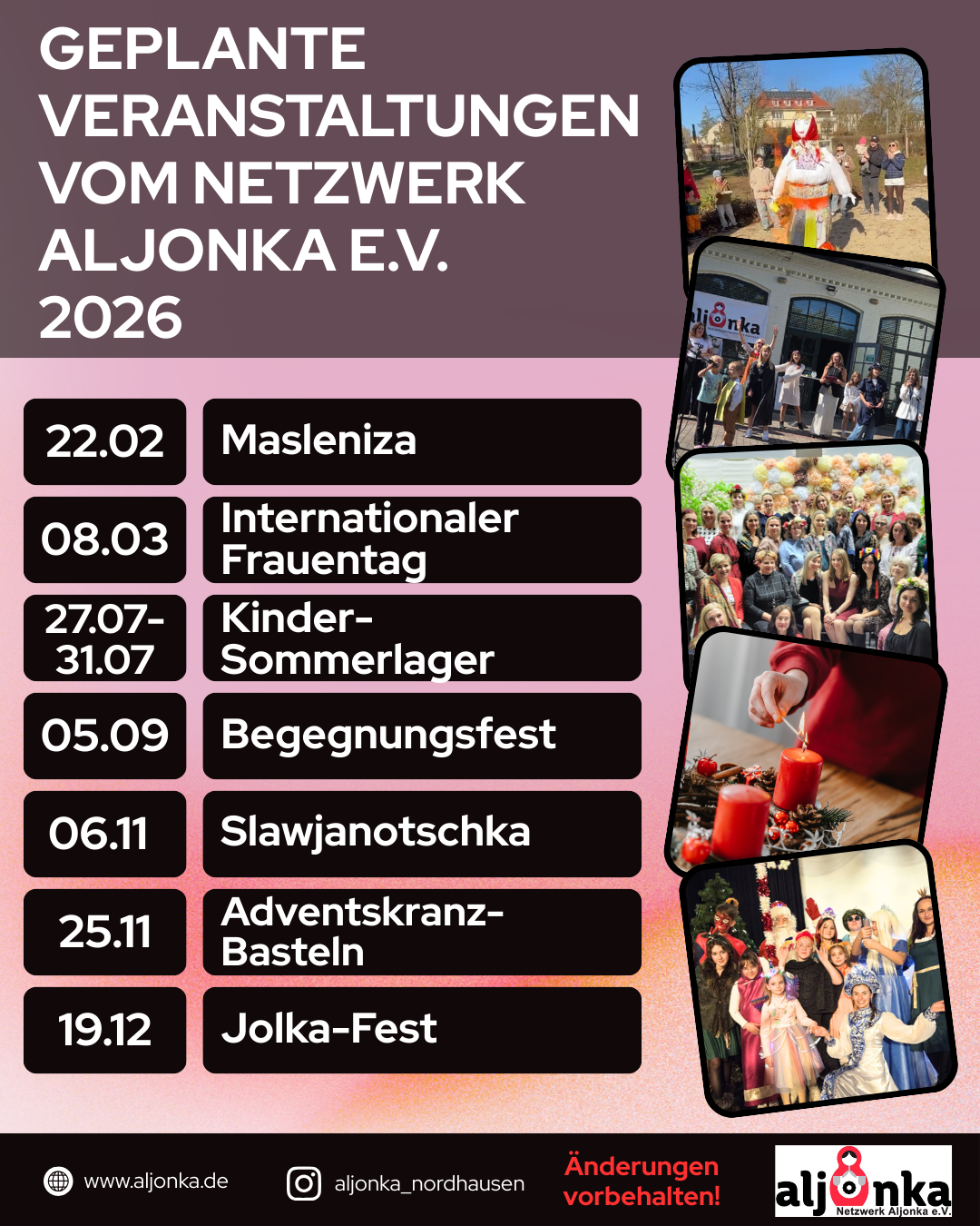 Wir sind ein gemeinnütziger Verein in Nordhausen, Thüringen. Wir verbinden die russischsprachige Menschen in unserem Landkreis.